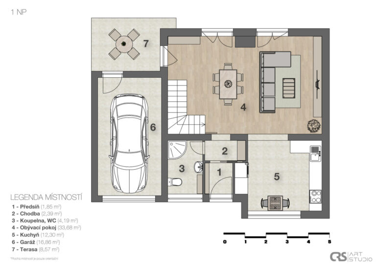 Pohodlné parkování vám zajistí garáž pro 1 vozidlo, kryté venkovní stání pro 1 vozidlo a stání na místní komunikaci.