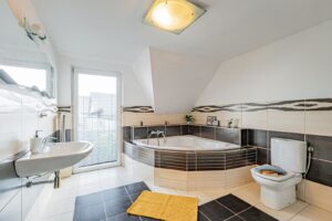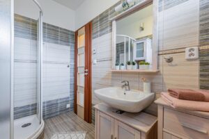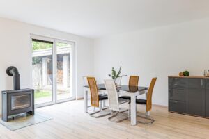Najdete zde plastová okna, dřevěné schody, plovoucí podlahy v obytných místnostech a keramickou dlažbu v koupelnách. Pro vaše pohodlí jistě oceníte velice úsporné elektrické podlahové vytápění DEVI s IRC systémem – časové ovládání každé místnosti. Atmosféru vám zpříjemní, když si zatopíte v krbových kamnech, které jsou zn. SAEY, tyto kamna z Belgie jsou vyrobeny z vysoce kvalitní litiny s tradicí výroby více než 100 let. Úložnu na dřevo máte na zahradě. K dispozici je internetová přípojka v každém pokoji, ale i wifi s posilovačem signálu.
