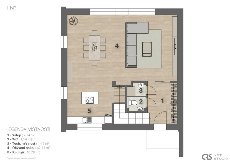 Užitná plocha domu činí 141 m2, přičemž pochozí půda poskytuje dalších 20 m2 prostoru. K dispozici je také technická místnost, spižírna a samostatná šatna. Tento dům byl zkolaudován v roce 2020 a je ve velmi dobrém stavu.