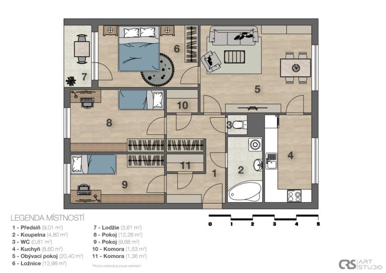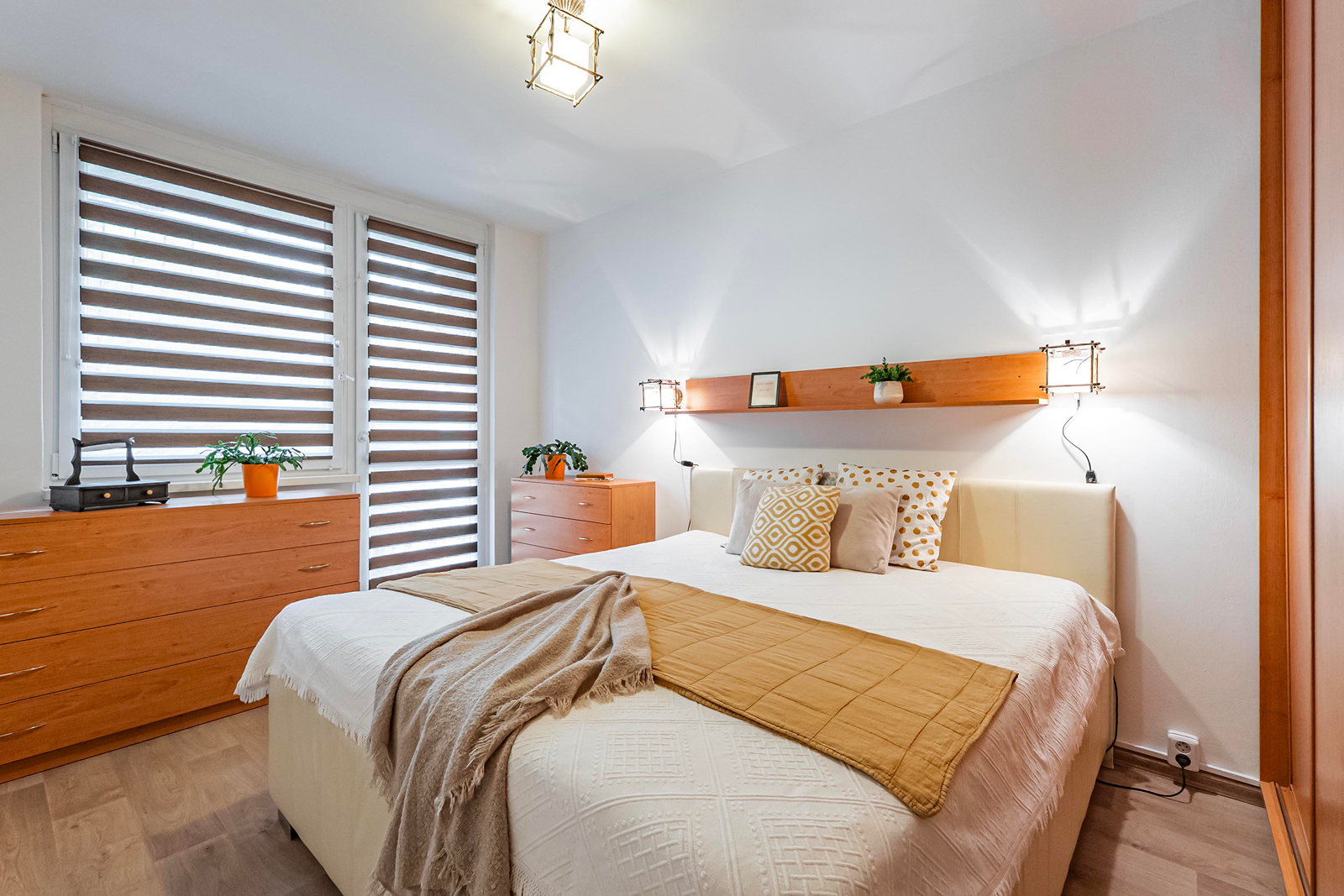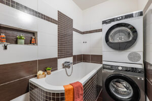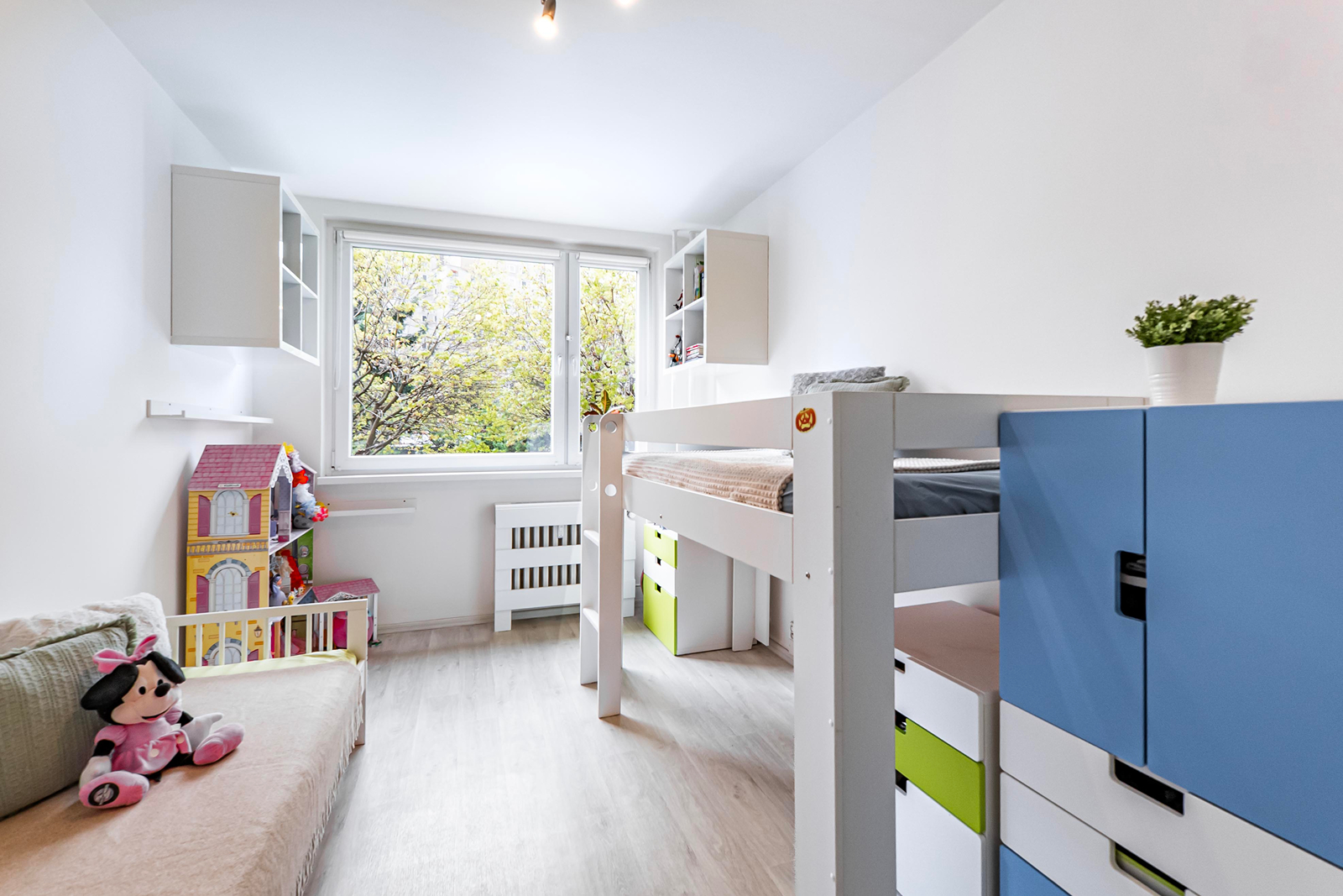 Tento byt je po rekonstrukci a je vybaven moderní kuchyňskou linkou se spotřebiči. V ložnici máte vestavěnou skříň na míru, která vám poskytne dostatek úložného prostoru. Koupelna v hezkém designu je zařízena vanou, umyvadlem a koupelnovým nábytkem. Okna bytu jsou plastová, což přispívá k lepší energetické účinnosti a snižuje náklady na vytápění. Jistě oceníte zabudované vnitřní rolety den a noc.