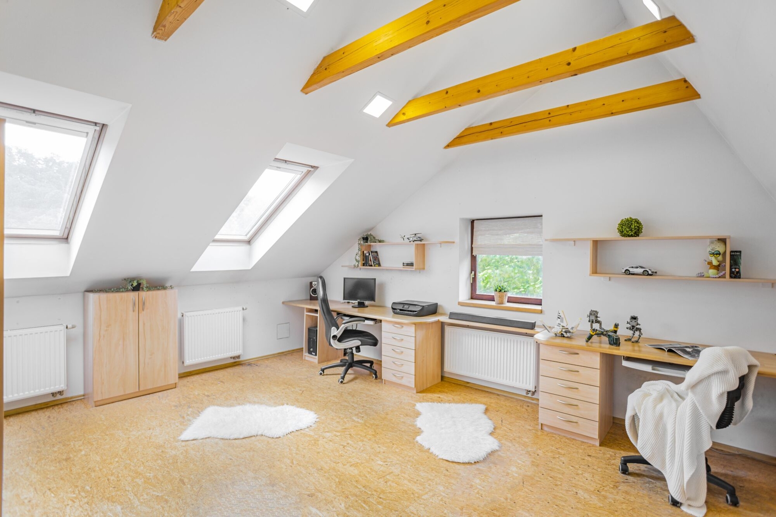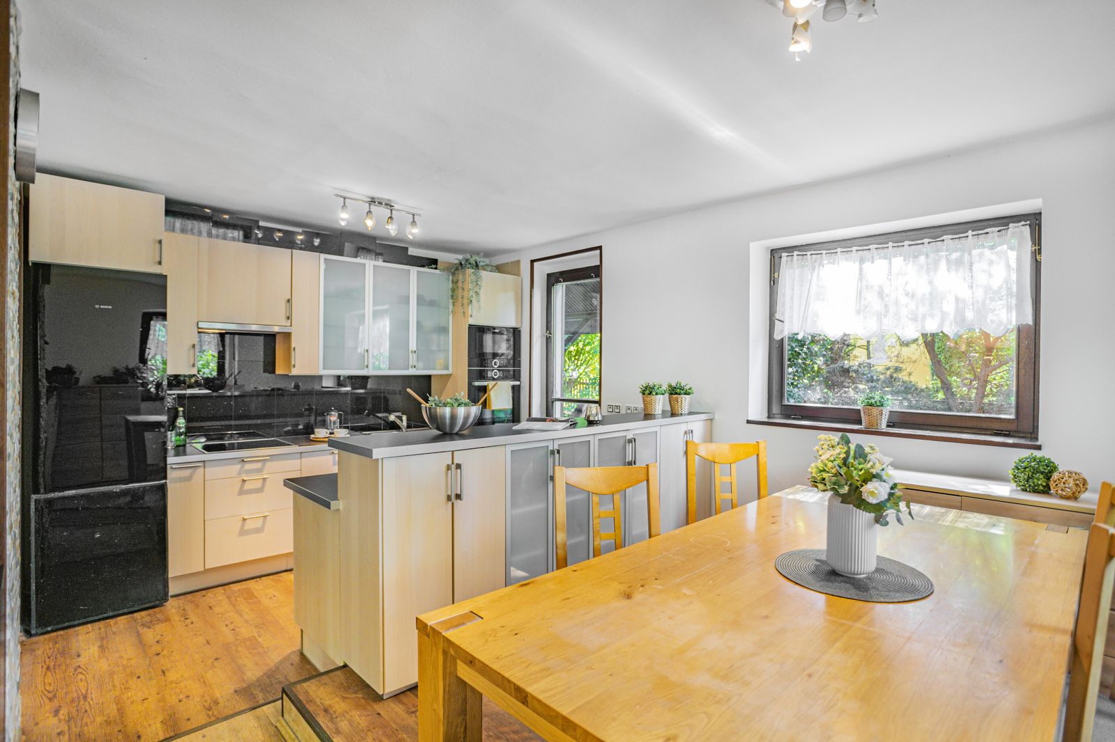 Interiér domu je po částečných rekonstrukcích, je světlý a vzdušný a je vybaven dřevěnými okny s dvojskly, které zajistí příjemné klima a úsporu energie. K vytápění slouží plynový kotel Vaillant a v horní koupelně je k dispozici podlahové vytápění pro maximální pohodlí. Ohřev vody zajišťují dva elektrické bojlery a v patře je instalována klimatizace pro příjemný pobyt během horkých letních měsíců. Tento dům je ve velmi dobrém stavu a je ideální pro rodiny hledající komfortní bydlení. Vstup do domu lze zajistit pomocí kódu nebo otisku prstu.