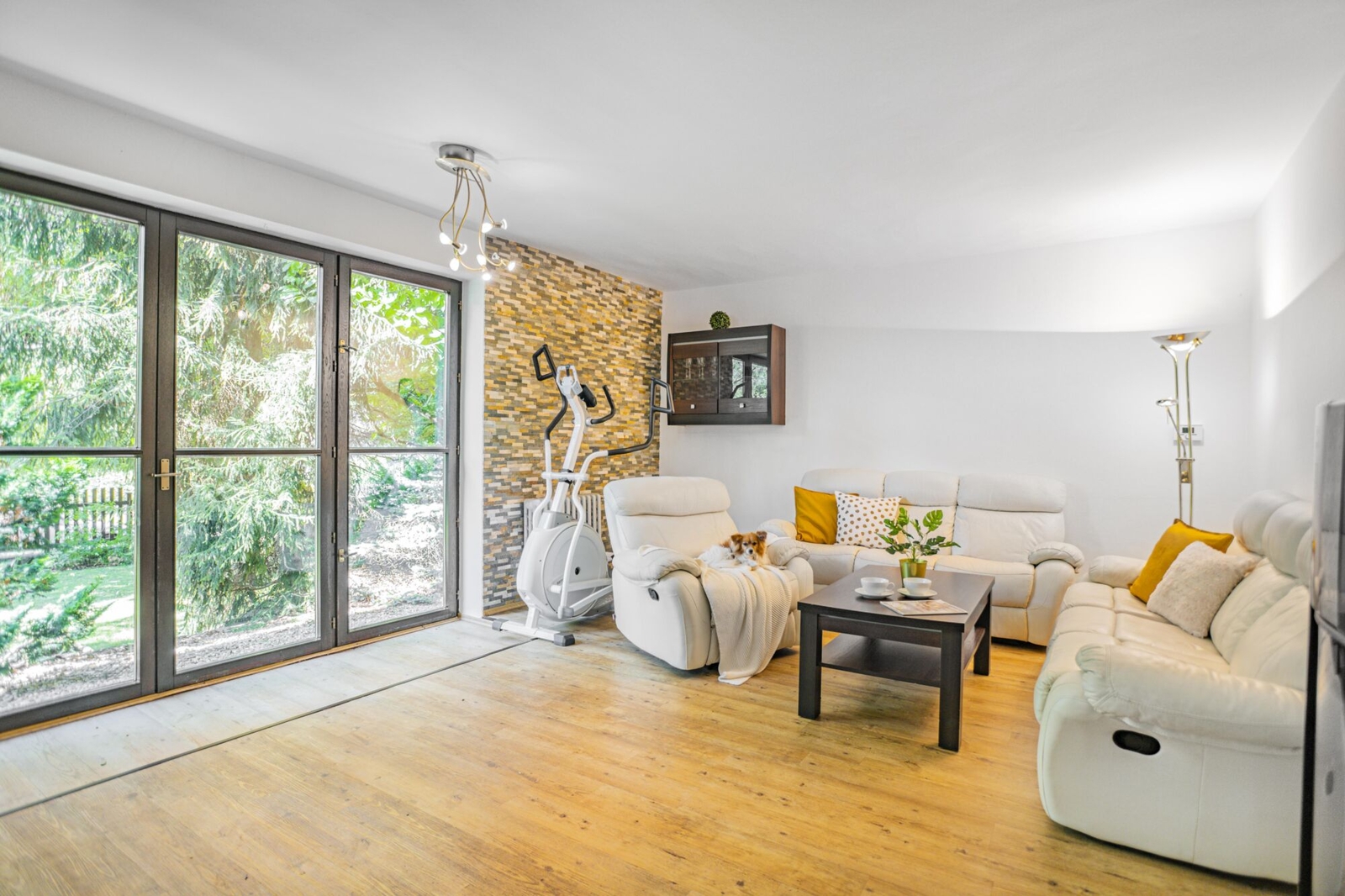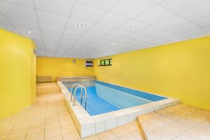 Jistě oceníte dvojgaráž pro bezpečné a pohodlné parkování automobilů a krytý bazén, který nabízí možnost koupání po celý rok.