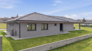 Nabízíme vám novostavbu rodinného domu o dispozici 5+1 z roku 2023, která se nachází v klidné a malebné obci Mezouň nedaleko Prahy. Jedná se o přízemní, bezbariérový bungalov s užitnou plochou 210 m², situovaný na prostorném pozemku o celkové výměře 1712 m².