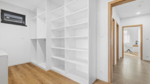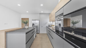 Dominantou domu je světlý a prostorný obývací pokoj a samostatná kuchyně s kuchyňskou linkou v elegantním designu, vybavenou kvalitními spotřebiči Siemens. Součástí kuchyně je také praktický ostrůvek, americká lednice a spíž poskytující dostatek úložného prostoru. Komfort bydlení dále doplňují vestavěné skříně, tři koupelny a čtyři toalety. K dispozici je také pochozí půda vhodná pro uskladnění sezónních věcí.