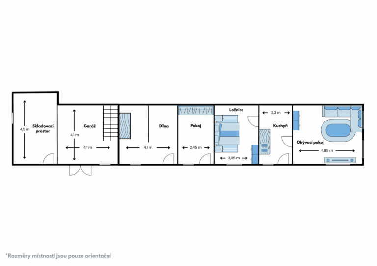Tento dům je přízemní, ale nabízí možnost a potenciál pro vybudování obytné půdy, čímž se zvýší užitná plocha a zároveň využití prostoru. Je vhodný jak k trvalému bydlení, tak pro rekreaci.
