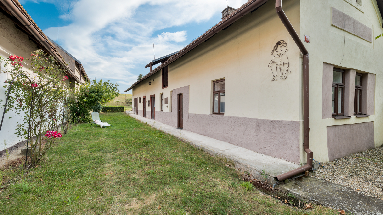 Původní stav umožňuje novým majitelům provést vlastní úpravy a přizpůsobení podle svých představ. Dřevěná okna dodávají domu tradiční atmosféru.