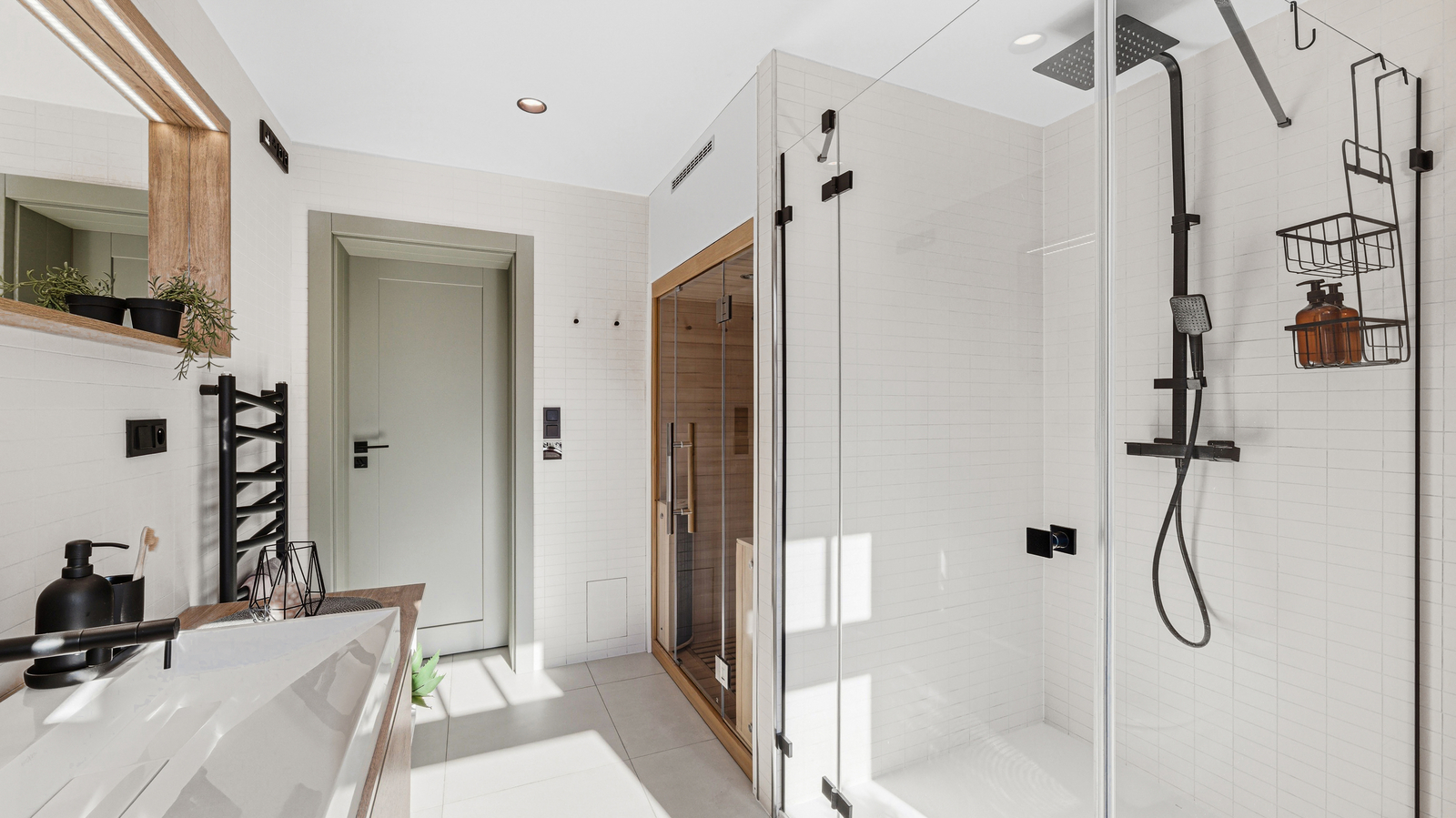 Po dni stráveném na horách přijde vhod jeden z největších benefitů tohoto apartmánu – vlastní sauna, která nabízí dokonalý prostor pro relaxaci.