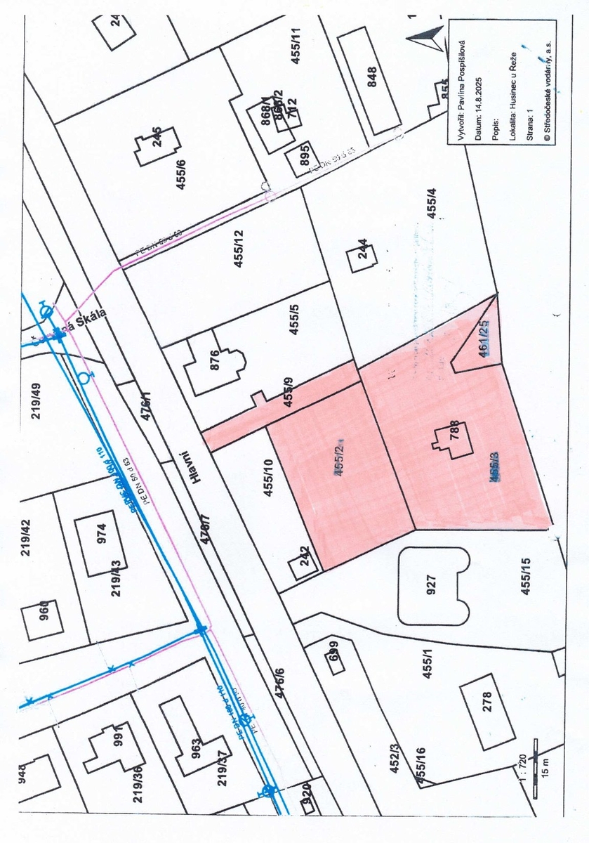 Souhlasná vyjádření ČEZ, vodárny Kladno-Mělník a správce ČOV jsou vydána pro napojení tří domů se třemi bytovými jednotkami pro 36 osob. Hlavní vodovodní řád a splašková kanalizace je cca 30 m od pozemku, elektřina a optický kabel jsou na pozemky přivedeny.