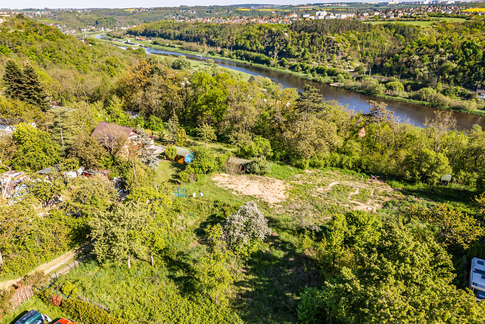 Nabízíme k prodeji soubor stavebních pozemků o celkové výměře 3223 m2 včetně příjezdové komunikace. Nacházejí se v obci Řež – Husinec ve velmi klidné lokalitě v zákrutu řeky Vltavy. Díky skvělé poloze nad řekou poskytují krásné výhledy na okolní přírodu, historické hradiště Levý Hradec a Vltavu.