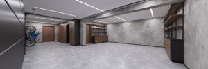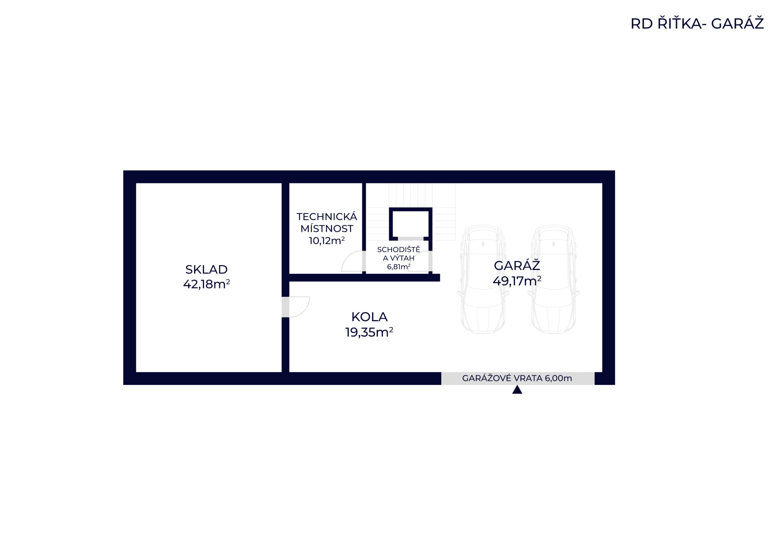 Podzemní podlaží o velikosti cca 127 m² zahrnuje garáž, technické zázemí a prostor pro wellness, fitness nebo domácí kino. Projekt zároveň počítá s instalací výtahu z garáže přímo do obytné části domu.