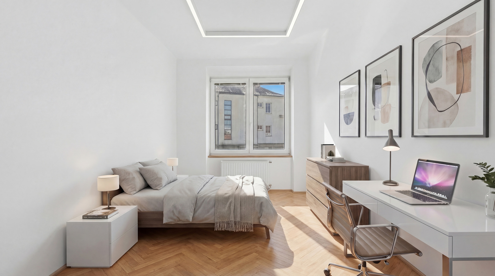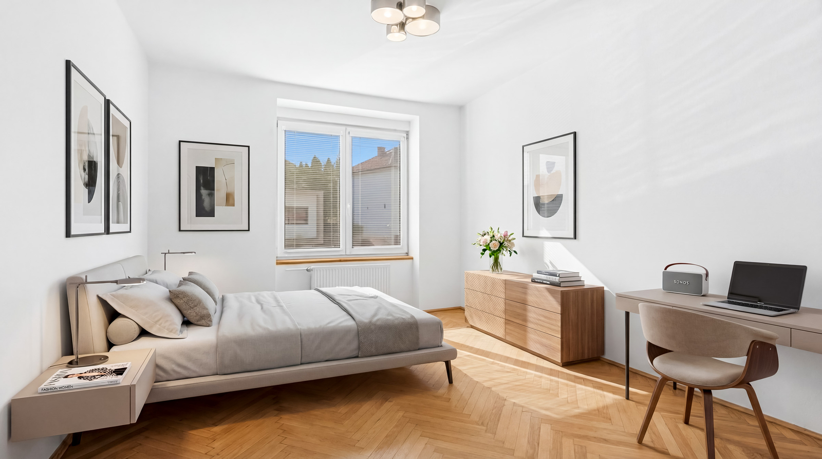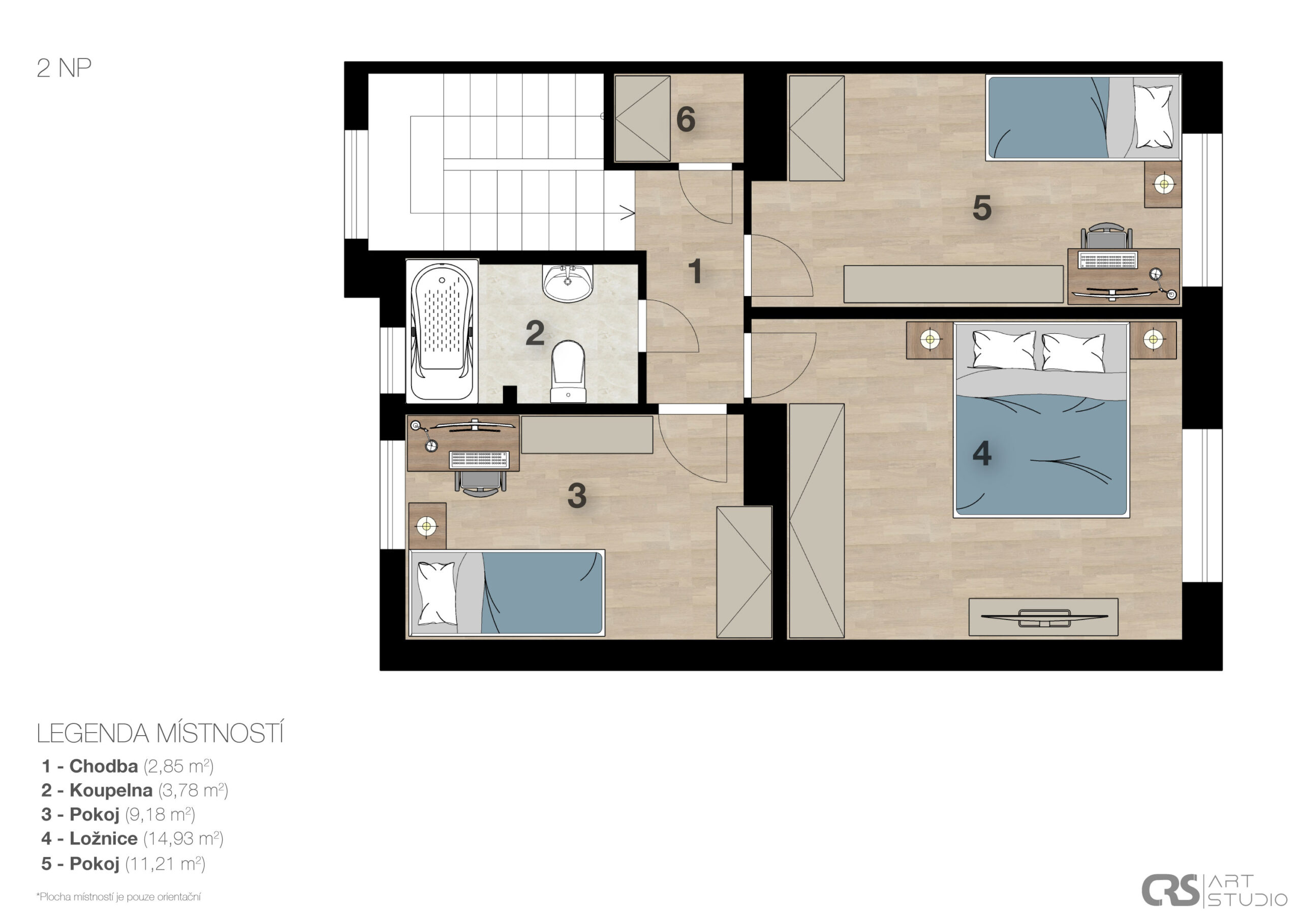 2. nadzemní podlaží: tři samostatné pokoje a koupelna