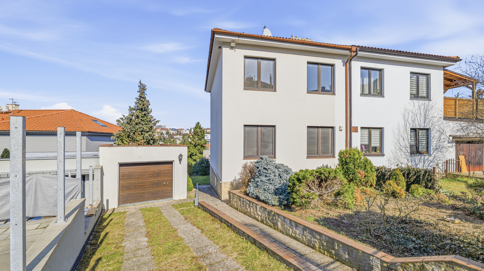 Velkou výhodou je umístění domu v klidné slepé ulici, která nabízí příjemné a bezpečné prostředí pro rodinné bydlení.