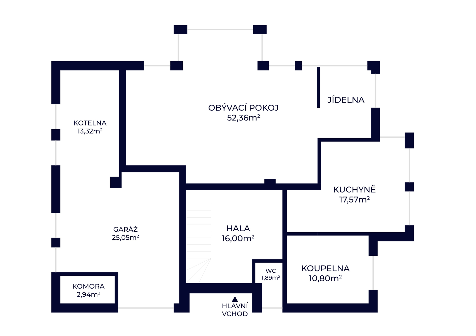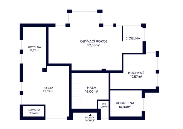 Praktickým doplňkem domu je půda poskytující další úložný prostor a garáž nebo skladovací prostor s vlastním vjezdem. Parkování je možné také na zpevněné ploše pro dvě auta přímo na pozemku.