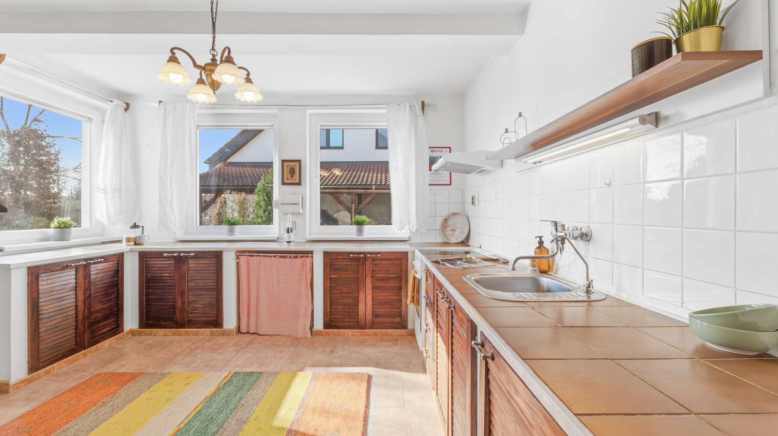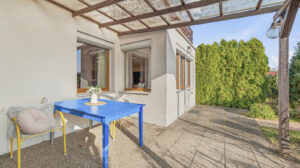 Na obytnou část navazuje prostorná terasa orientovaná do zahrady, která nabízí ideální místo pro ranní kávu, letní posezení i rodinná setkání.